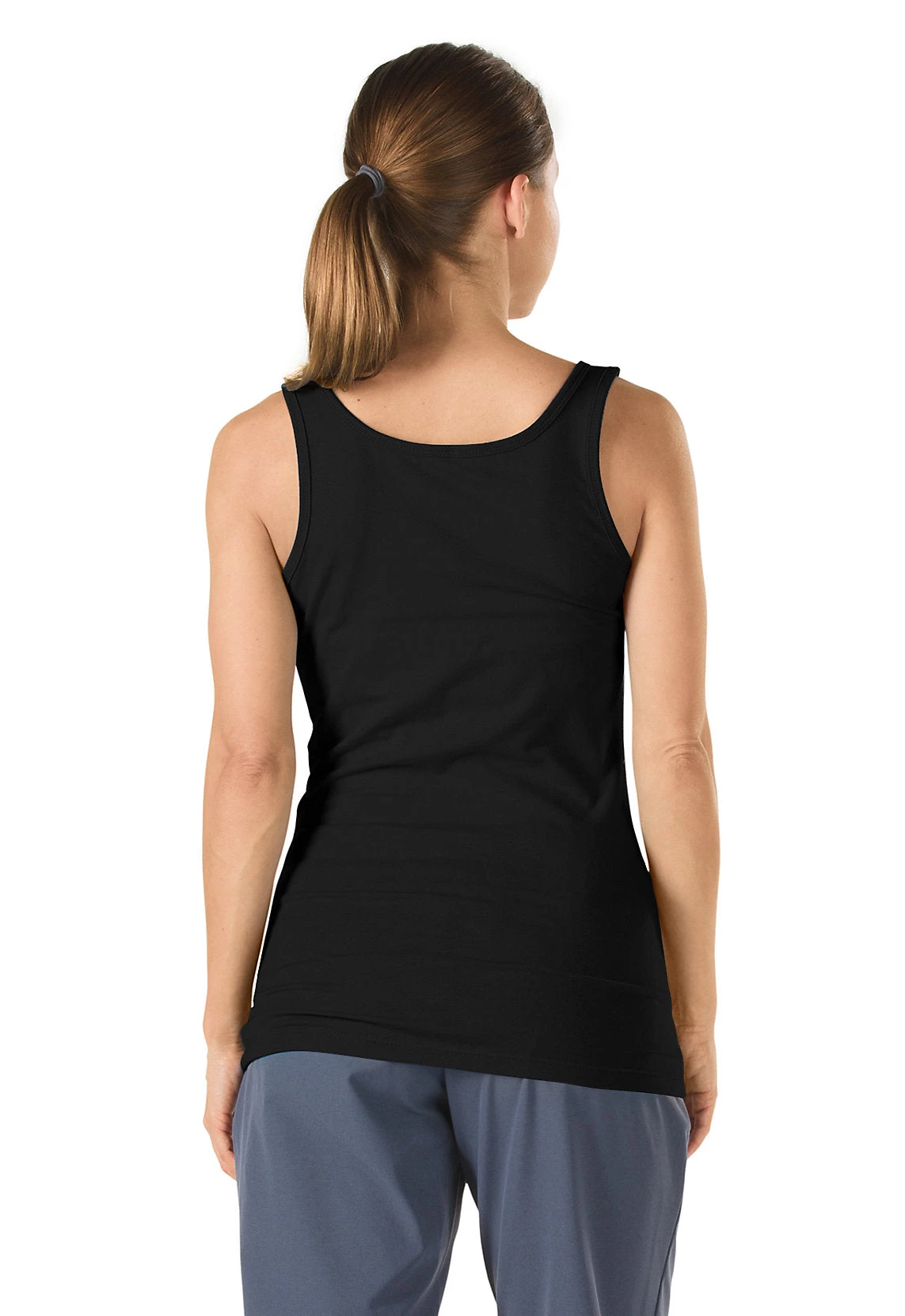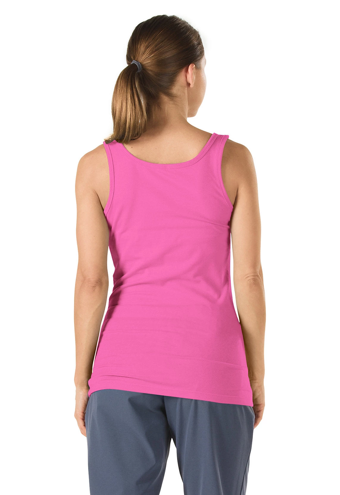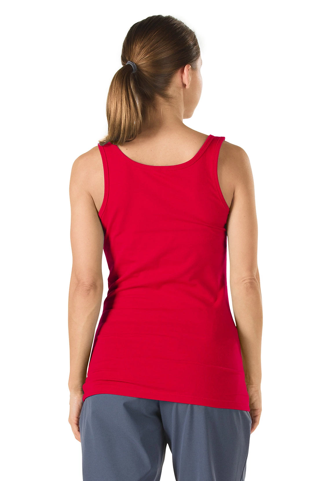 Move easily between swim breaks and the gym in this graphic tank top. Featuring a scoopneck and longer length, this racerback style is versatile enough for whatever activity you choose. 57% Cotton / 38% Poly / 5%Spandex.