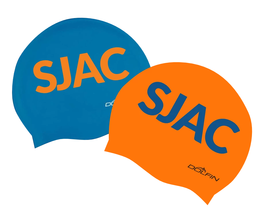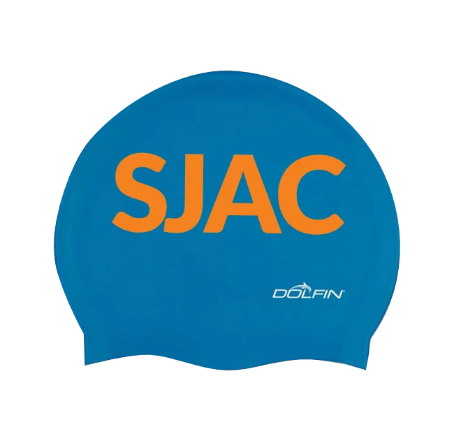 #Represent in the pool with your SJAC team cap. Silicone caps are more durable and last longer than average latex caps, and feature a more comfortable and secure fit.