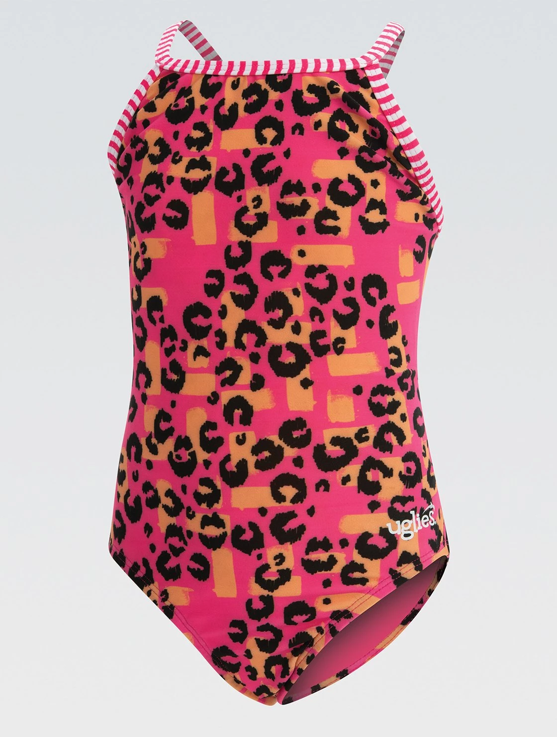 Let out your wild side in this adorable one-piece crossback swimsuit. With it’s bright cheetah print, and signature Uglies candystripe binding, you’ll stand out in and out of the water.