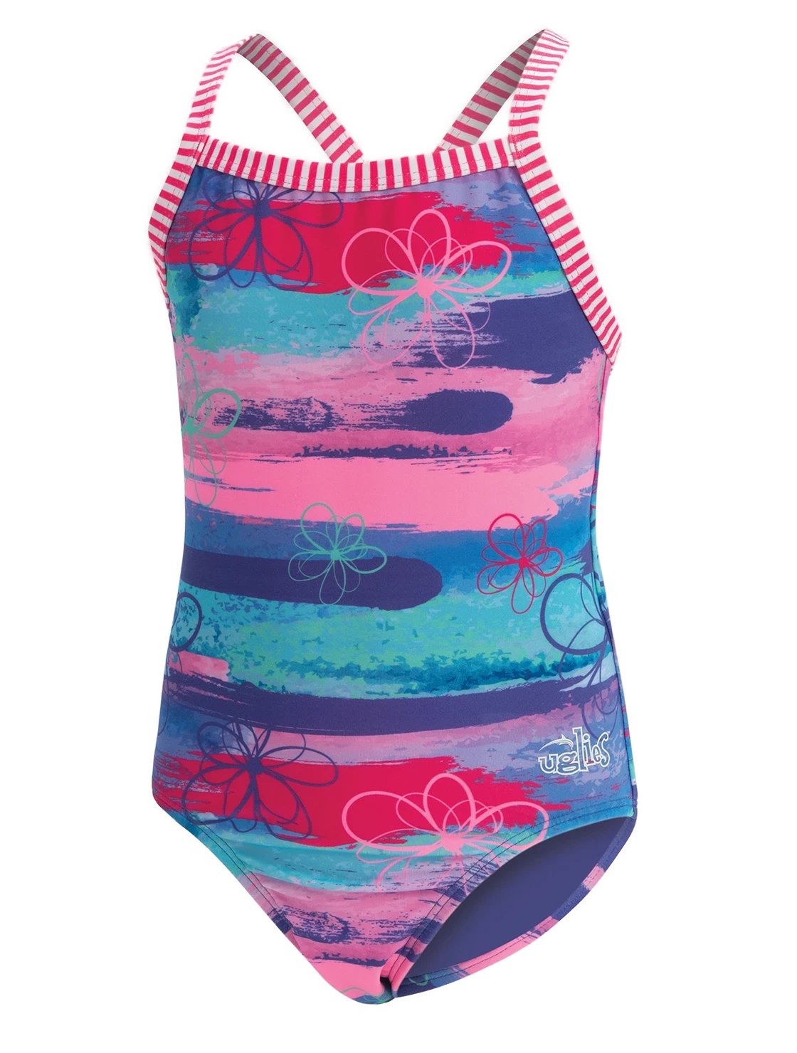 This Dolfin Uglies girls one-piece Surf’s Up watercolor floral print swimsuit is the perfect mix of fashion and function. Plus, the durable polyester-spandex blend fabric offers outstanding color and shape retention.