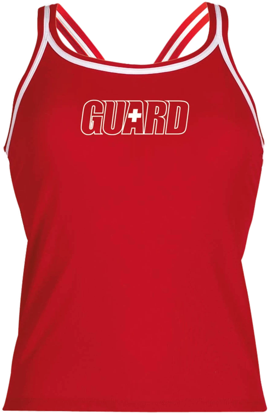 Get the job done at the pool or beach in this scoop-neck, solid top with white accents and a guard logo. Perfect fit and feel. Stay comfortable on duty with fully-lined, 100% polyester.