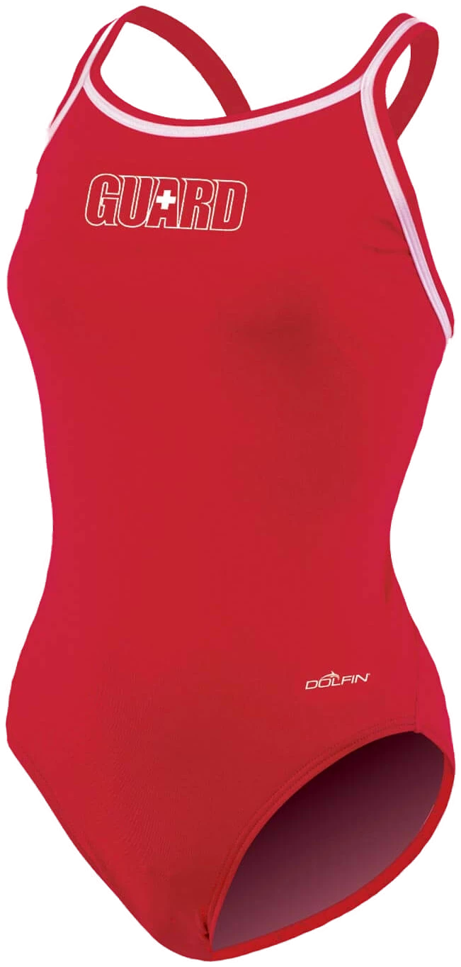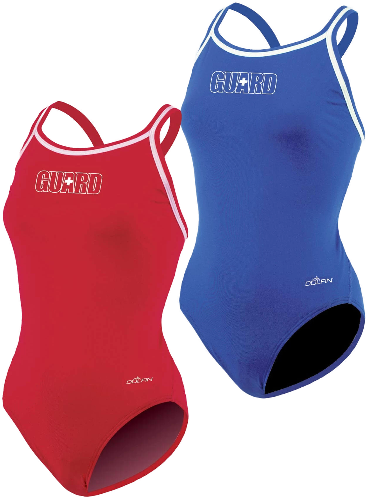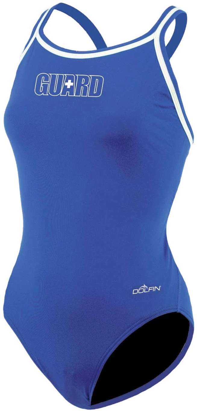 Wherever duty calls, our DBX-back guard swimsuit in solid red or royal will have you covered with UVA and UVB 50+ protection, Durastitch for hundreds of durable hours, and long-lasting straps. Featuring 100% polyester for comfort.
