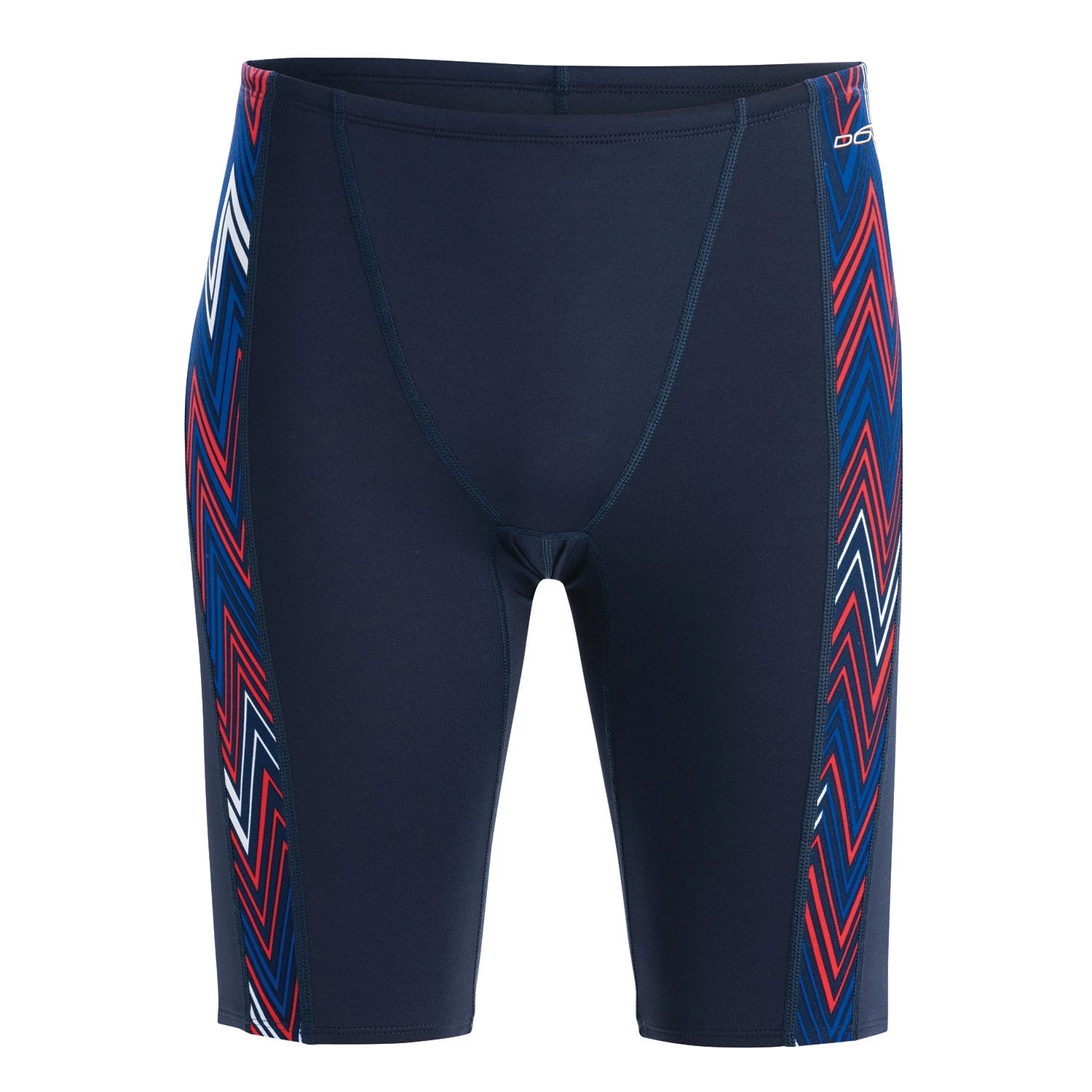 Get maximum comfort for long days in the water with the PolyLite Men’s Red/White/Blue Chevron Spliced Jammer!