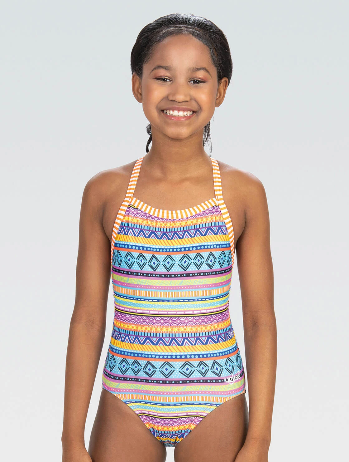 How fun is this training suit for girls!? Featuring a colorful array of stripes and designs, this one piece is made to help spread some smiles during practice.