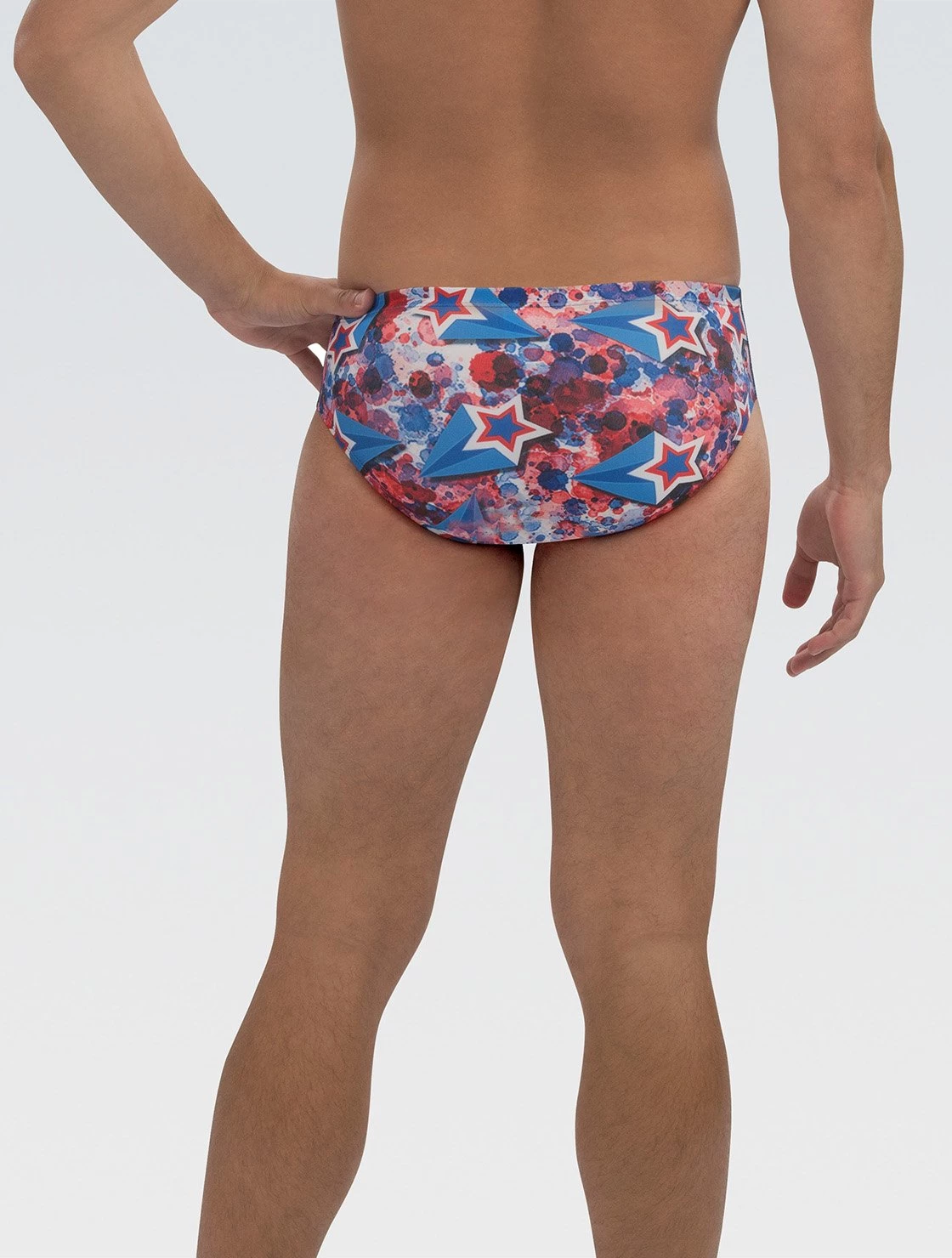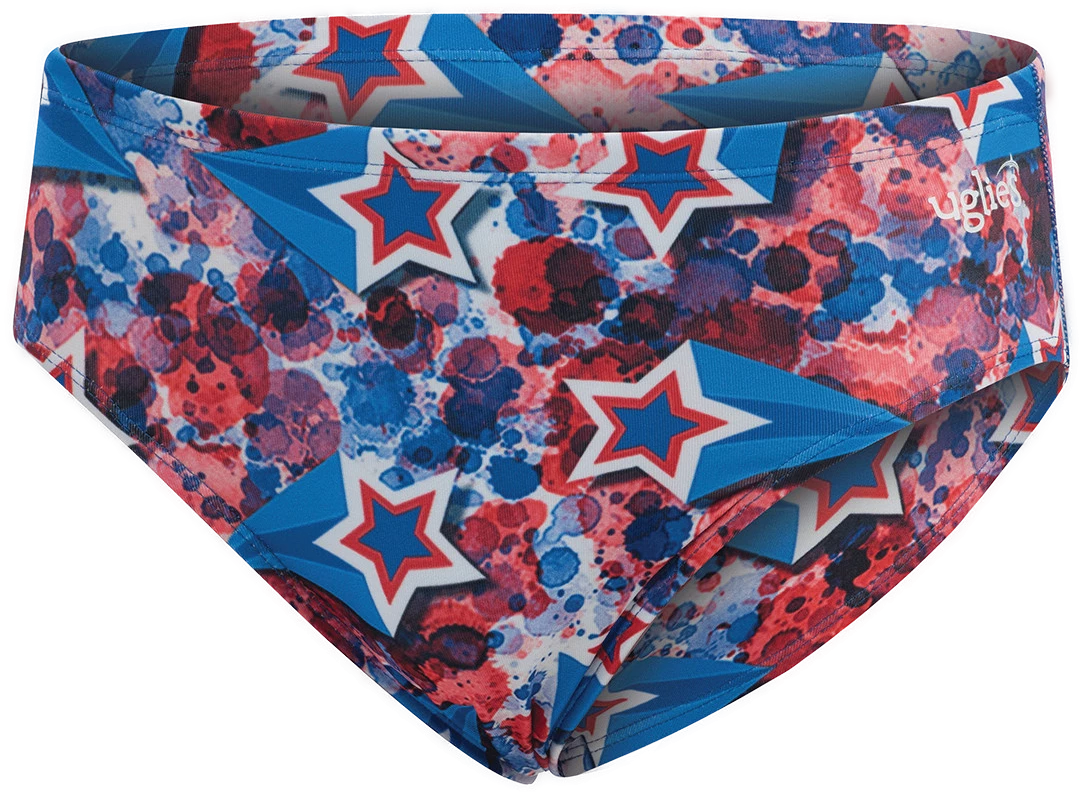 Rock the red, white, and blue all season long in the Uglie’s Men’s Liberty patriotic print racer! Its athletic fit is perfect for swimmers training for their next race.
