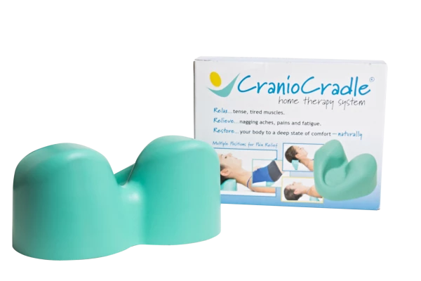 Designed to feel and function like skilled therapeutic hands under the body, the CranioCradle® gently relaxes tense muscles, relieves aches, pains and fatigue and provides deep relaxation. Multiple positions under the head, neck, body, and sacrum to decompress vertebrae, create mild traction, release trigger points, enable still points and melt away restrictions and stress throughout the body. Use to ease headaches, Migraines, chronic neck & shoulder pain, TMJ, whiplash & low back aches. It’s easy to use and works in minutes.