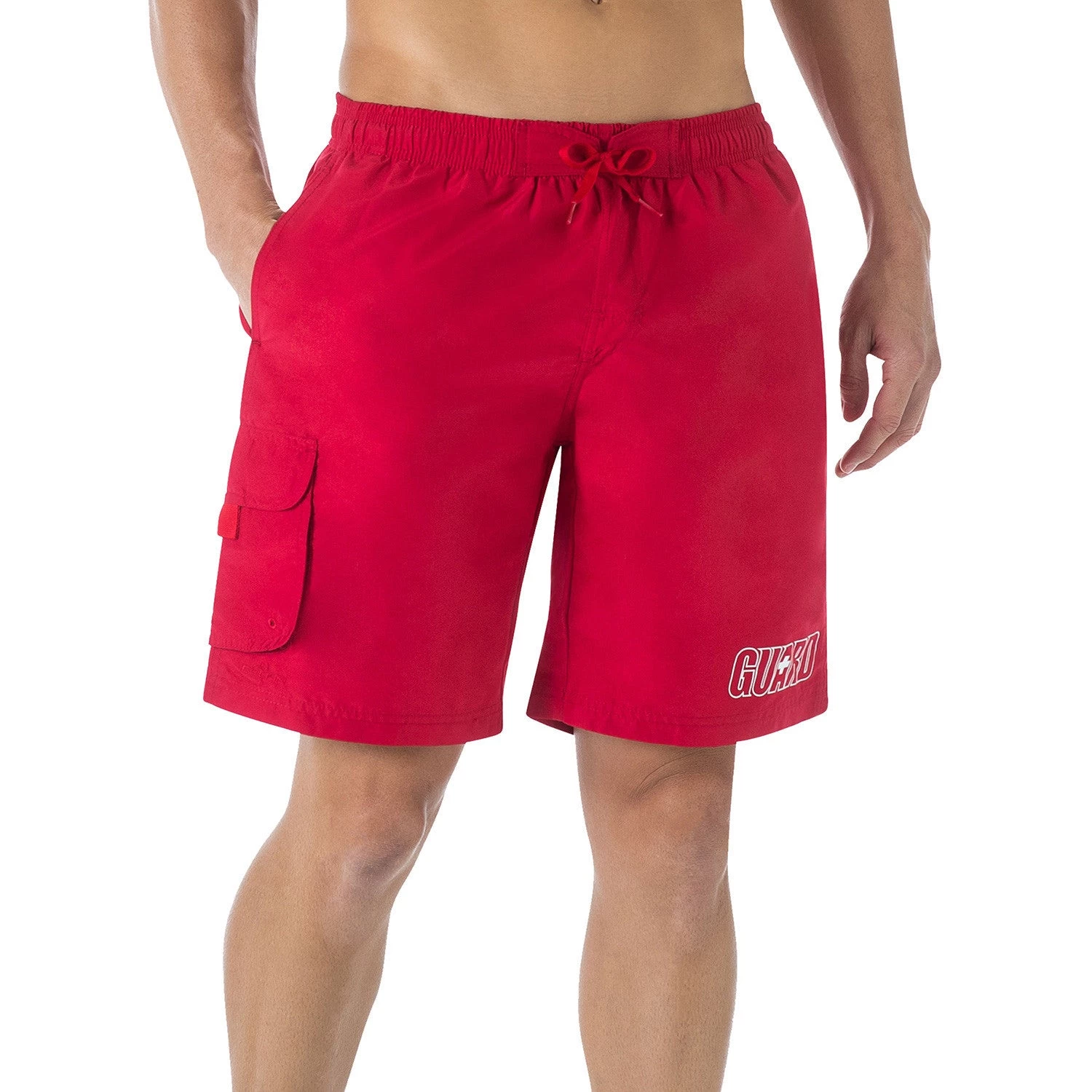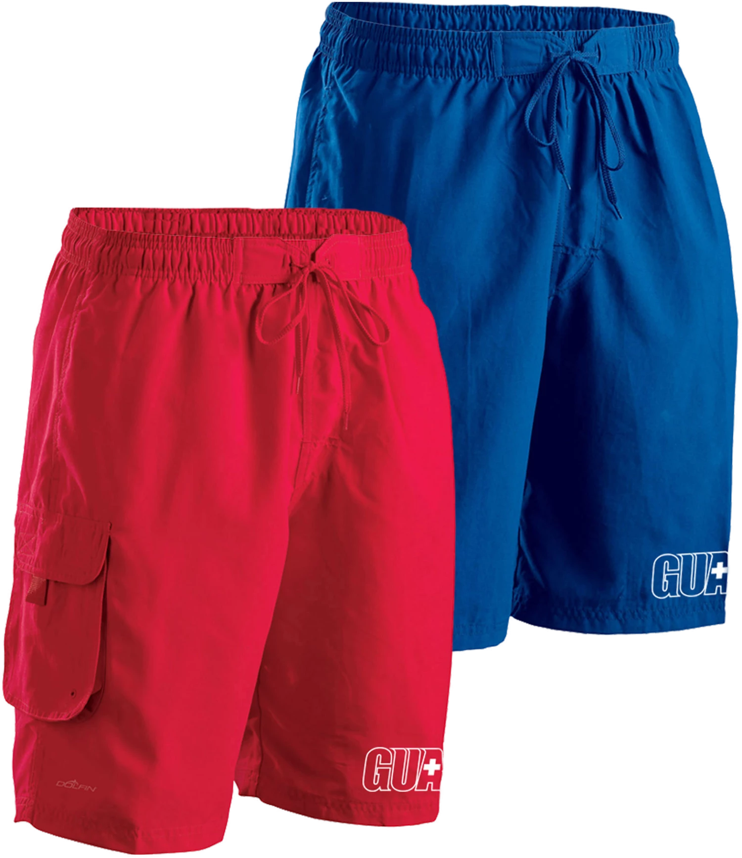 Try out one of our best selling shorts in solid red or royal blue. The 9 inch inseam length and easy elastic waist bring comfort so you can have fun in the sun. Featuring an internal drawcord for added security, soft quick-drying polyester microfiber fabric, and side pockets.