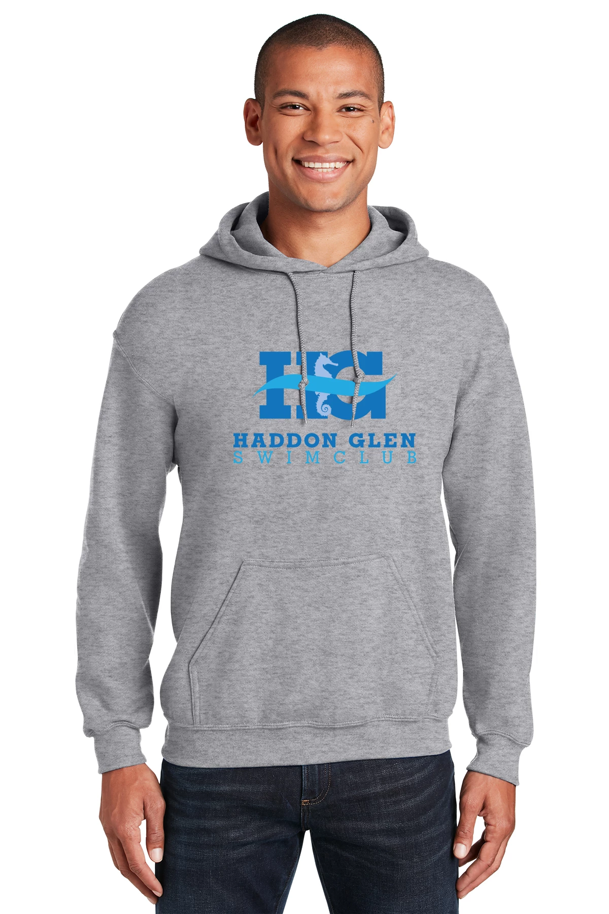 50% cotton/50% polyester. Double-lined hood with dyed-to-match drawcord. 1×1 rib knit cuffs and waistband with spandex. Front pouch pocket.