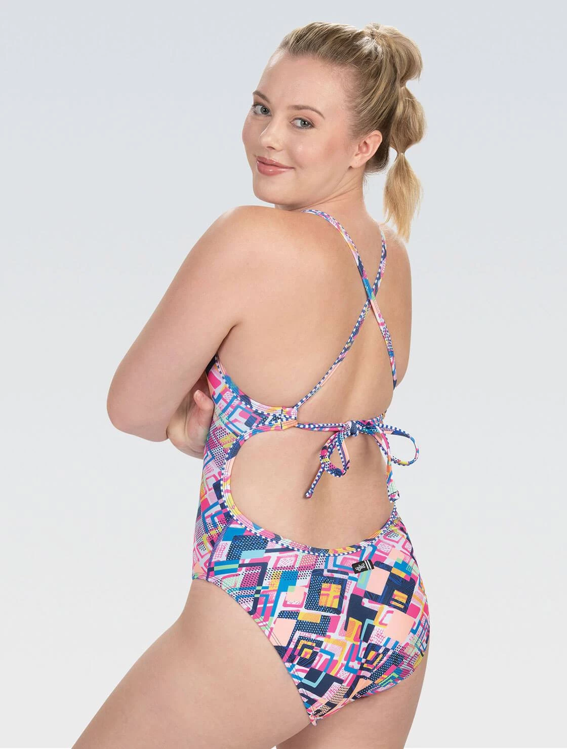 Totally rad and ready for some sun time with you, this Geo Remix one piece swimsuit features a super fun colorful geometric pattern all around. Sitting by the ocean enjoying some waves or spending the day training in the pool on a sunny afternoon, this suit is just fabulous!