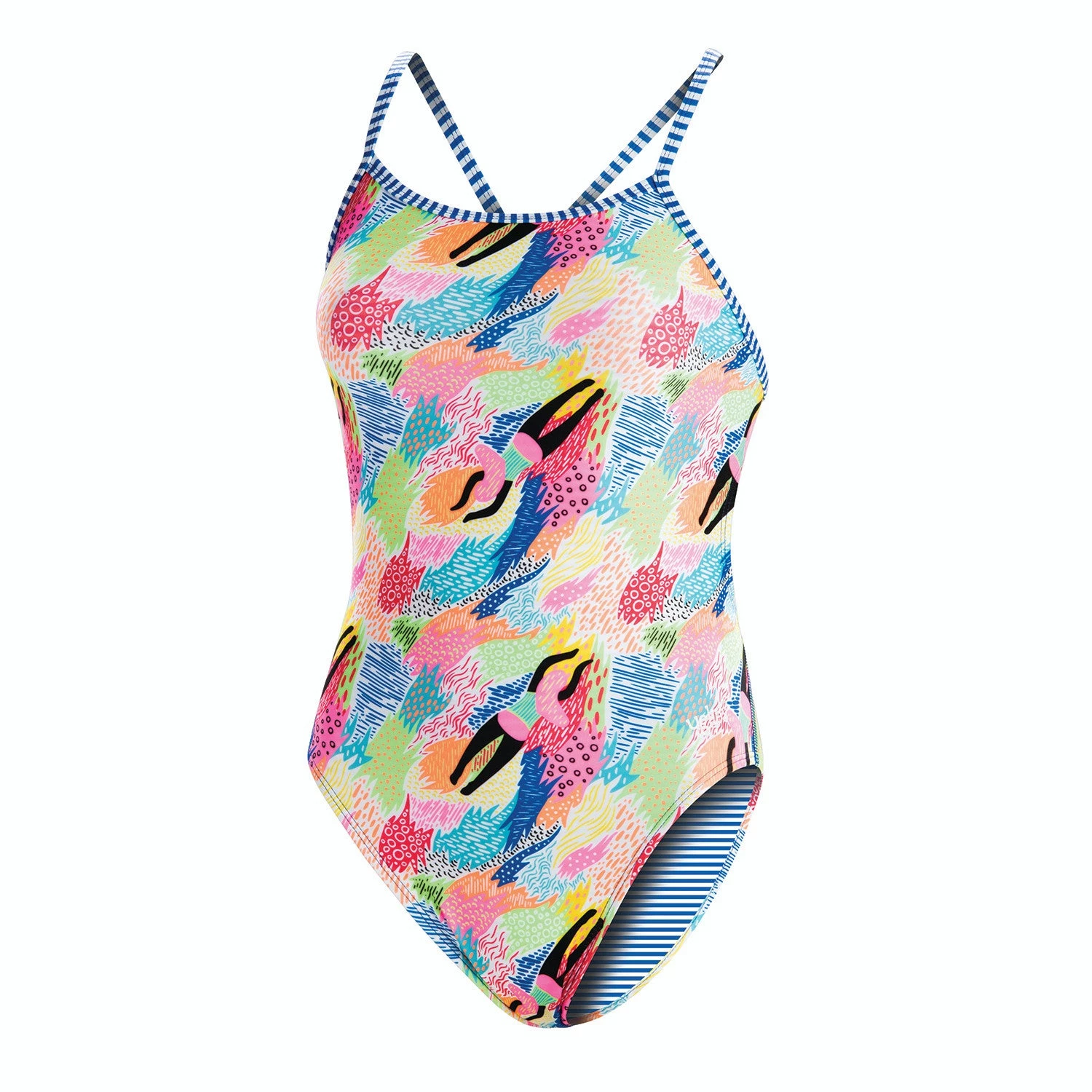 Broaden your horizons and explore parts unknown just like the hidden swimmer in the Womens Uglies Dive Deep Double Strap Back One Piece swimsuit.