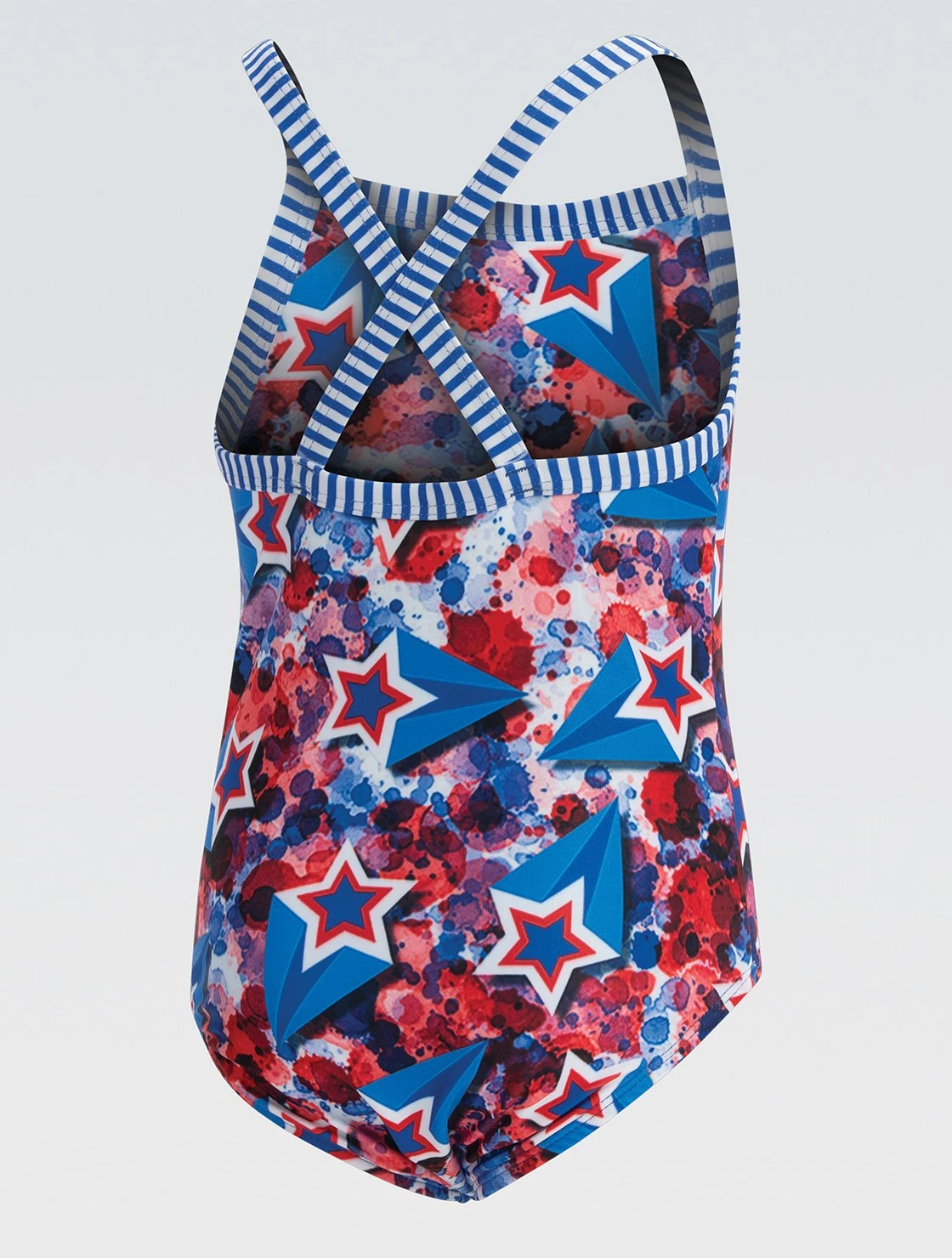 Rock the stars (and stripes) in this red, white, and blue Liberty patriotic print. The bright colors and comfortable fit make this swimsuit perfect for practice or just hanging poolside.