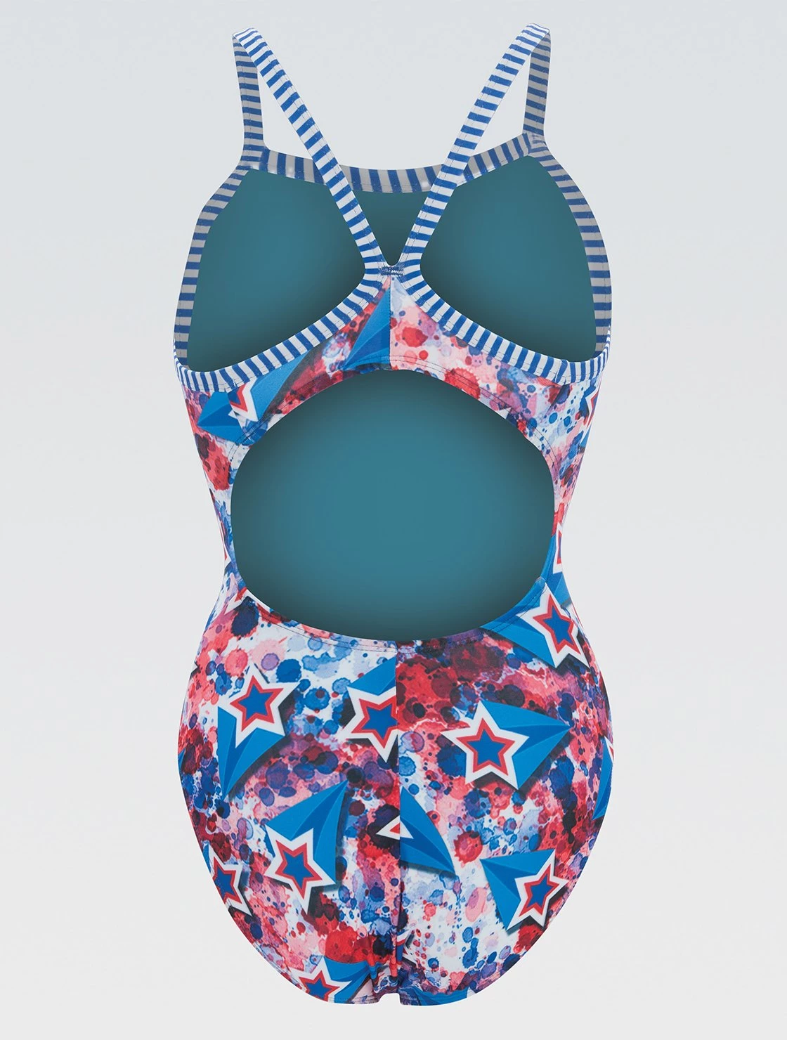 You’ll be the star of the pool in this one-of-a-kind patriotic print. The athletic fit makes it ideal for swimmers of all levels training for the next big race.