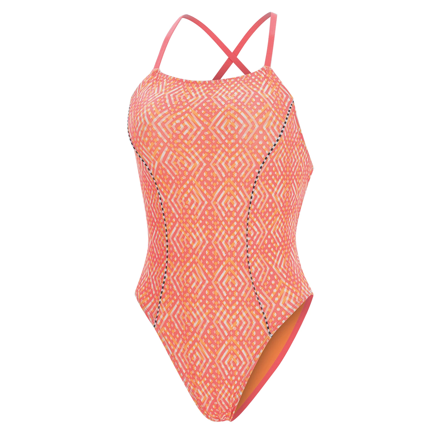 As cheerful and bright as summer sunshine, this one-piece swimsuit in orange Roxie print is a stunner! With a show-stopping silhouette and diamondback, you’ll turn heads in and out of the water.