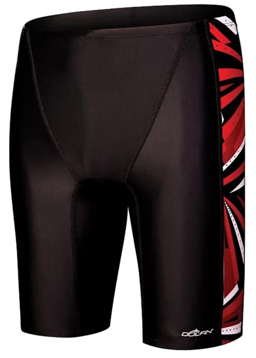 Confidence meets style and function in this XtraSleek ECO Spliced Jammer in black with red print on sides. With its front panel liner and nylon blended with Xtra Life Lycra, this suit will last through many laps.